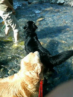 チャンピーは、「ねえっ、入ってもいいの?汚れてもいいの?」って